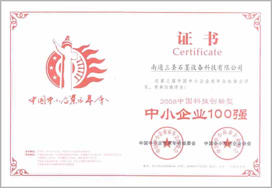 經(jīng)第三界中國中小企業(yè)家年會組委會評定,我公司被評定為:2008中國科技創(chuàng)新型中小企業(yè)100強(qiáng)