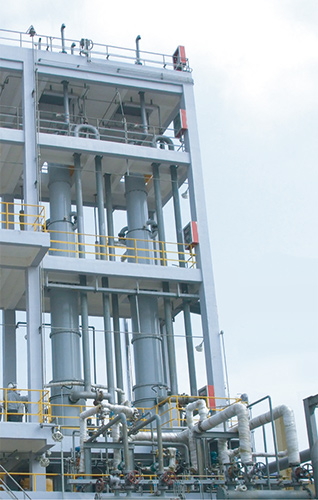 Cl2、H2合成、吸收、冷卻,副產(chǎn)尾氣再處理四個(gè)工藝程序合并在一臺(tái)設(shè)備內(nèi)完成。